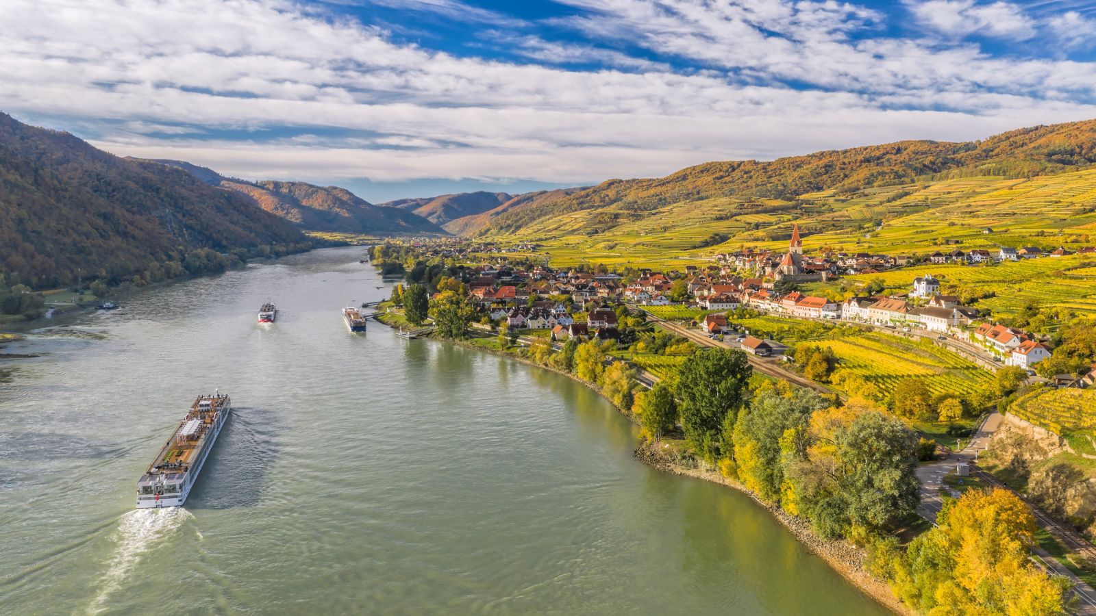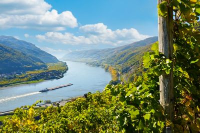 Die Wachau liegt etwa 200 Kilometer flussabwärts von Passau. Das 35 Kilometer lange Flusstal der Donau ist für seine atemberaubende Schönheit bekannt und gehört daher zum UNESCO-Welterbe: sanfte Weinberge, imposante Ruinen und Schlösser sowie die majestätische Donau, die sich hoheitsvoll durch das Tal schlängelt. Ganz klar: Die Natur steht hier im Vordergrund. Besonders erwähnenswert sind der blau-orangefarbene Eisvogel und der Zitronenpavian, die hier noch zu finden sind. Das milde Klima, die Sonnenhänge, die angenehm temperierten Nächte und die Urgesteinsböden machen die Wachau zu einem idealen Ort für den Weinanbau.