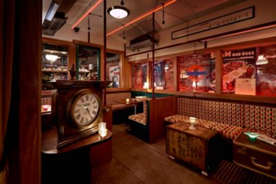Im Cahoots geht es einmal in die 1940er-Jahre und wieder zurück. Die Bar zählt zu den coolsten im Londoner Nachtleben und wird von vielen als Speakeasy, also als absoluter Geheimtipp Londons, gehandelt. U-Bahn-Wagon, Ticketschalter oder Signalstation – wo genießen Sie Ihren Cocktail?
