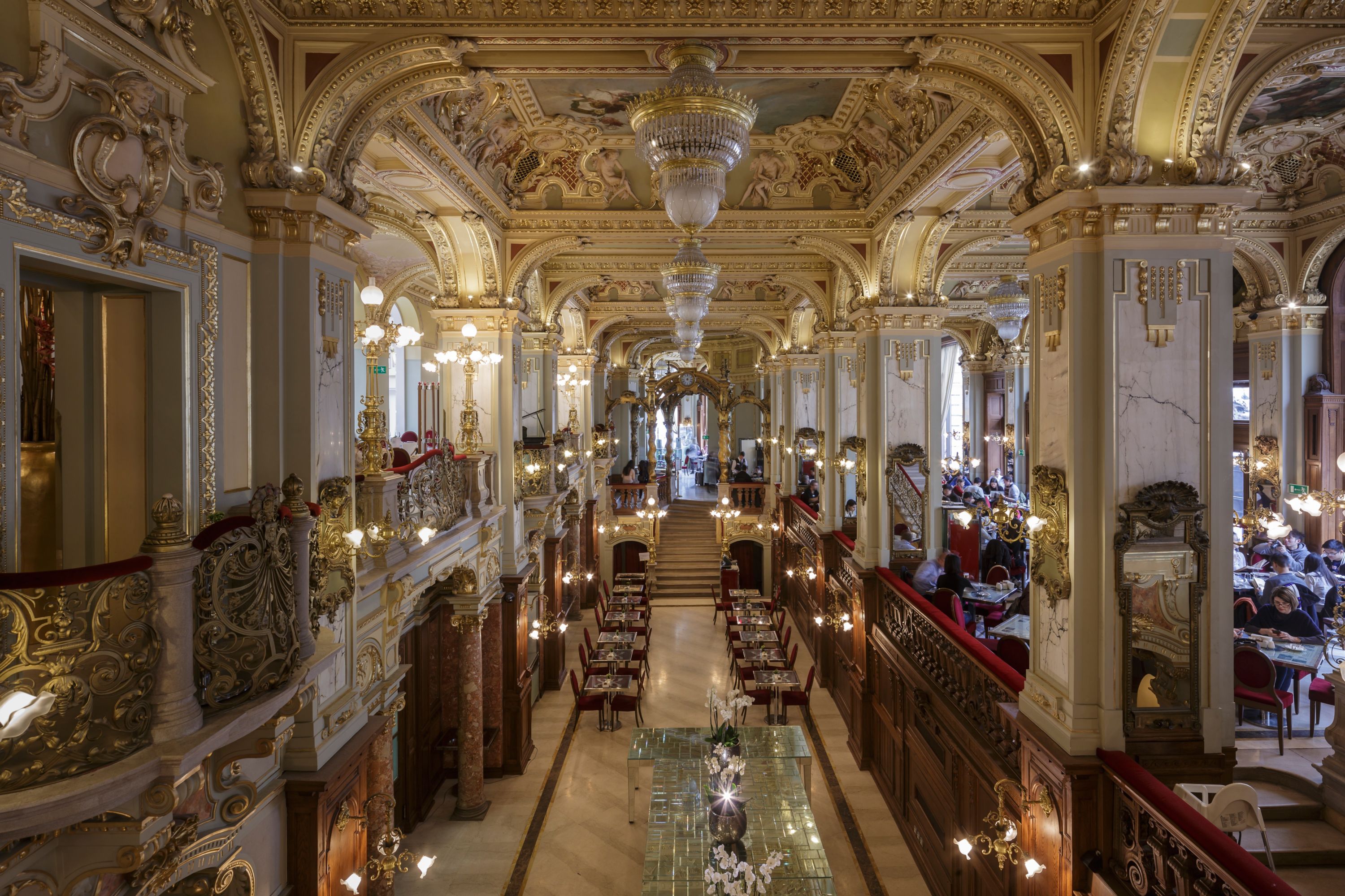 Prächtiger Palast für den Kaffee: Im New York Café in Budapest verschmilzt Belle-Époque-Architektur mit Gourmet-Kaffeekreationen zum Höhepunkt ungarischer Kaffeehauskultur.