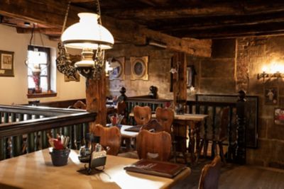 Zum Gulden Stern gilt als die älteste Bratwurstküche der Welt und hat eine Geschichte, die bis ins Jahr 1419 zurückreicht. In diesem Restaurant können Sie die Bratwurst von Nürnberg in einem authentisch mittelalterlichen Ambiente genießen. Das historische Interieur, mit seinen dunklen Holztischen und rustikalen Steinwänden, versetzt Sie direkt in die Vergangenheit.