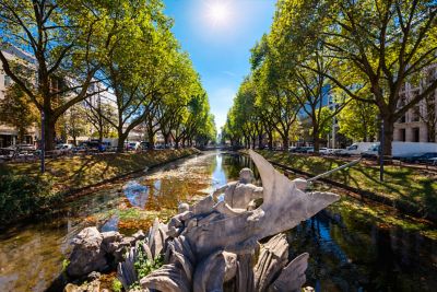 Düsseldorfs pittoreskes Carlstadt-Viertel bietet einen Mix aus Antiquitäten und Kunstgalerien. Schlendern Sie am Rhein entlang und genießen Sie das historische Flair der restaurierten Altbauten oder stöbern Sie in Concept-Stores wie „Kauf Dich Glücklich“ am Carlsplatz.