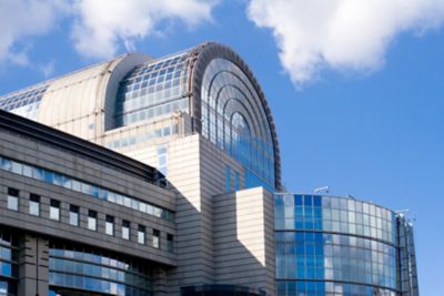Foto-Tipp: Besonders fotogen ist die gläserne Fassade des Europäischen Parlaments vom Place du Luxembourg aus. Bei Einbruch der Dämmerung taucht die Beleuchtung das Gebäude in ein spektakuläres Licht.