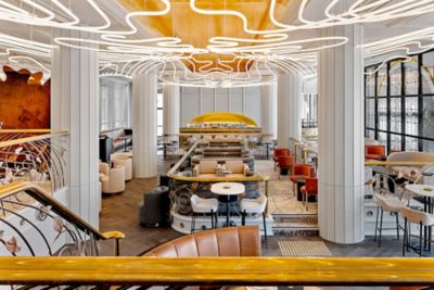 Restaurant, outdoor pool and atrium style bar