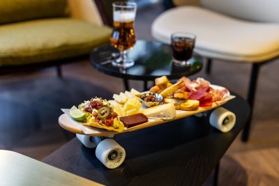The concern for guest comfort, flexibility and ease at TRIBE Den Haag Centraal shines out in its choice of eating options too. Run under the expert eye of Chef Kostas Kotidis and bringing Californian escapism and Mexican flavours to The Hague, Hitch Hike is TRIBE’s Cali-Baja restaurant, a colourful, laidback spot serving up tasty farm-to-table cuisine from noon till midnight. In the busy dining room – lots of locals are in too – we kick off supper with a munch board of stuffed olives, padrón peppers, cheese and cured meats, cutely presented on a mini skateboard! We follow with a robust sea-bass ceviche and quesabirria tacos filled with spicy slow-cooked beef. We manage a chilli chocolate sorbet between us, accompanying our Cali-Baja feast with a full-bodied Argentinian Malbec.