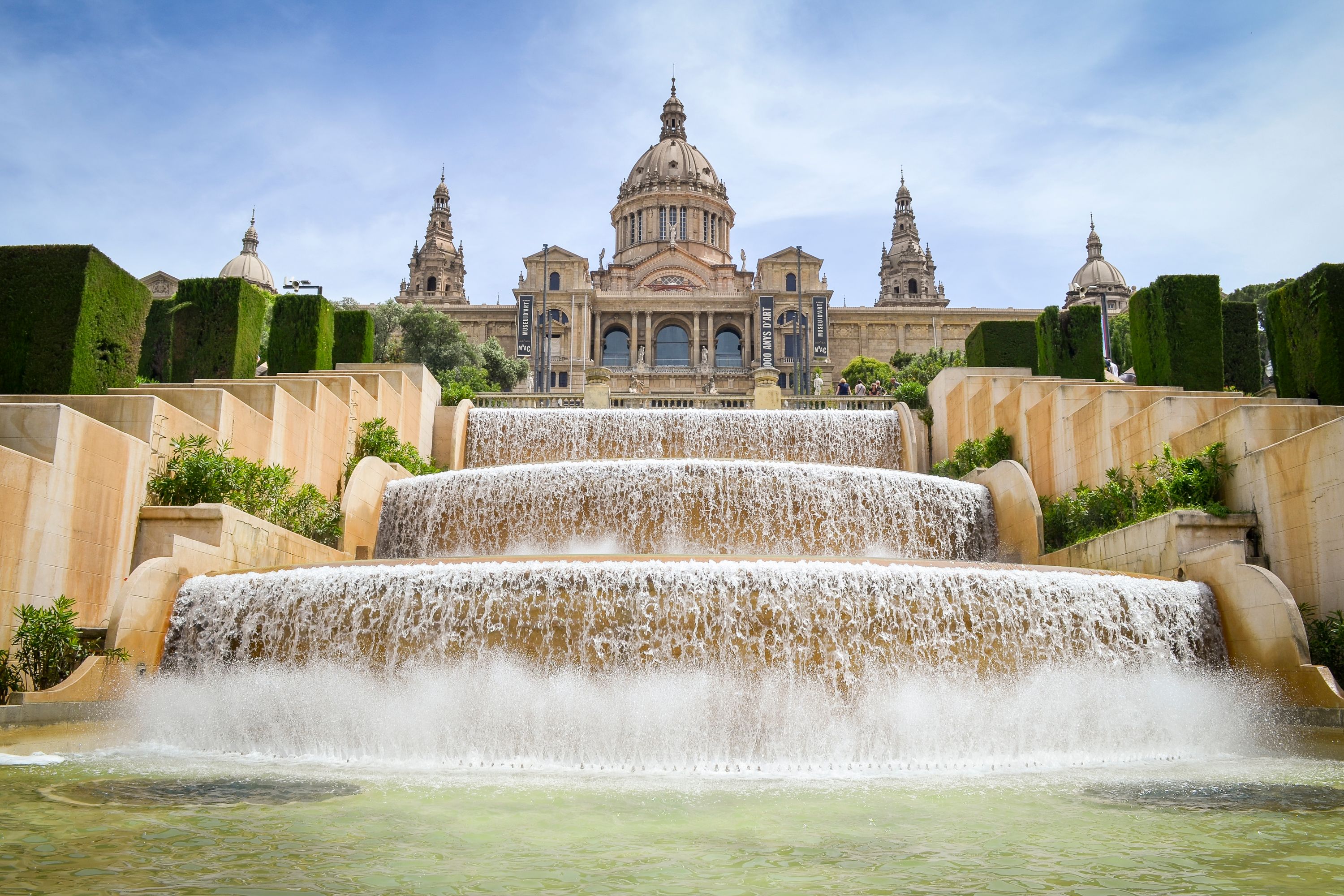 Once at the top, you can explore multiple famous buildings, such as the castle, museum, botanical gardens, an open-air architectural village designed by Josep Puig i Cadafalch, and the Magic Fountain of Montjuïc that puts on a choreographed water show every night.