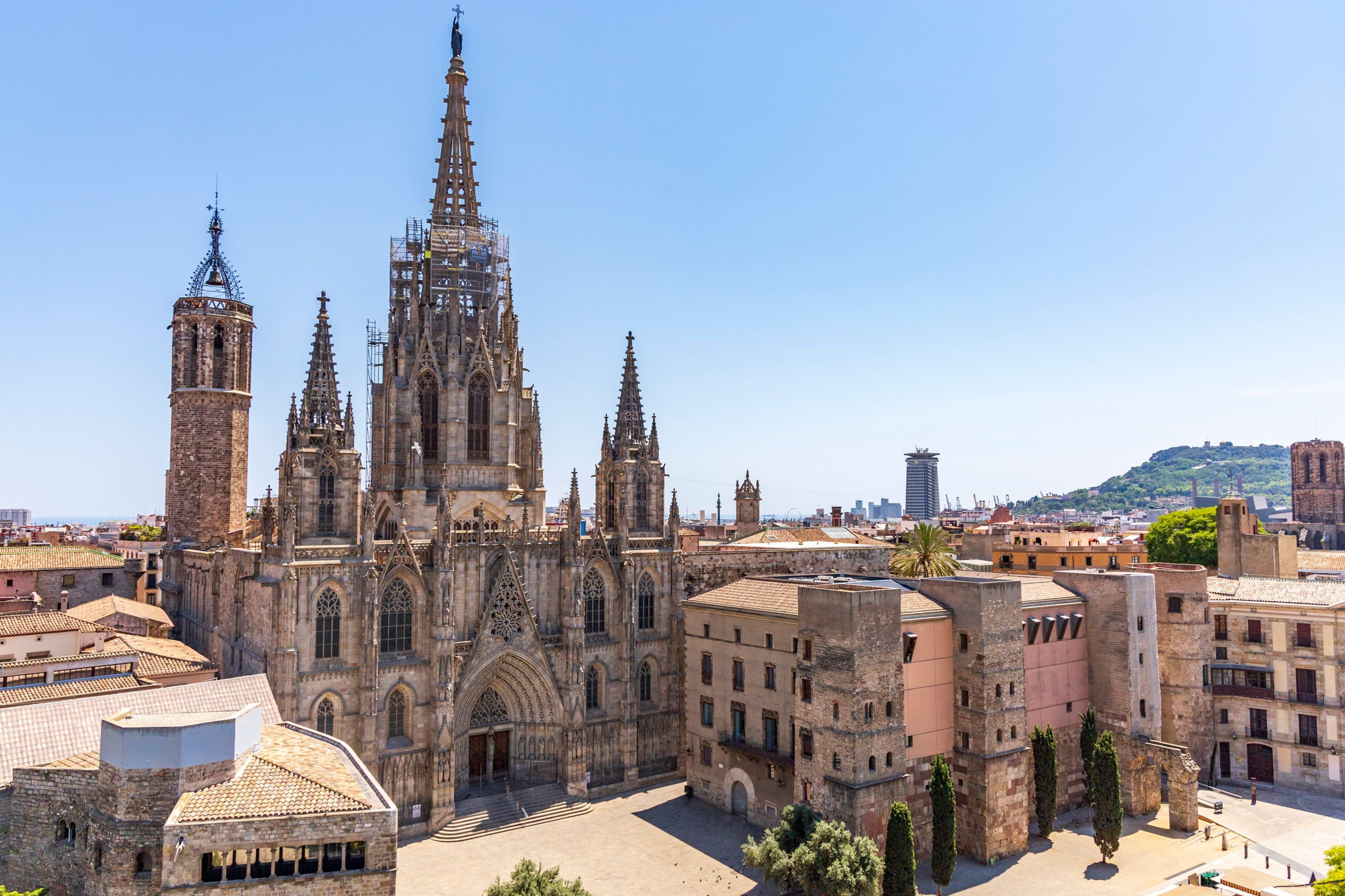 Stepping out of the Eixample district and into the Gothic Quarter, you’ll find the Catedral de la Santa Creu i Santa Eulàlia, also known as the Cathedral of Barcelona. This towering structure was built in the early 1400s, and while not as famous as Gaudí’s modernist masterpiece, this gothic revival church is a dramatic example of traditional medieval and Spanish architecture, covered in reliefs, gargoyles and picturesque stained glass.
