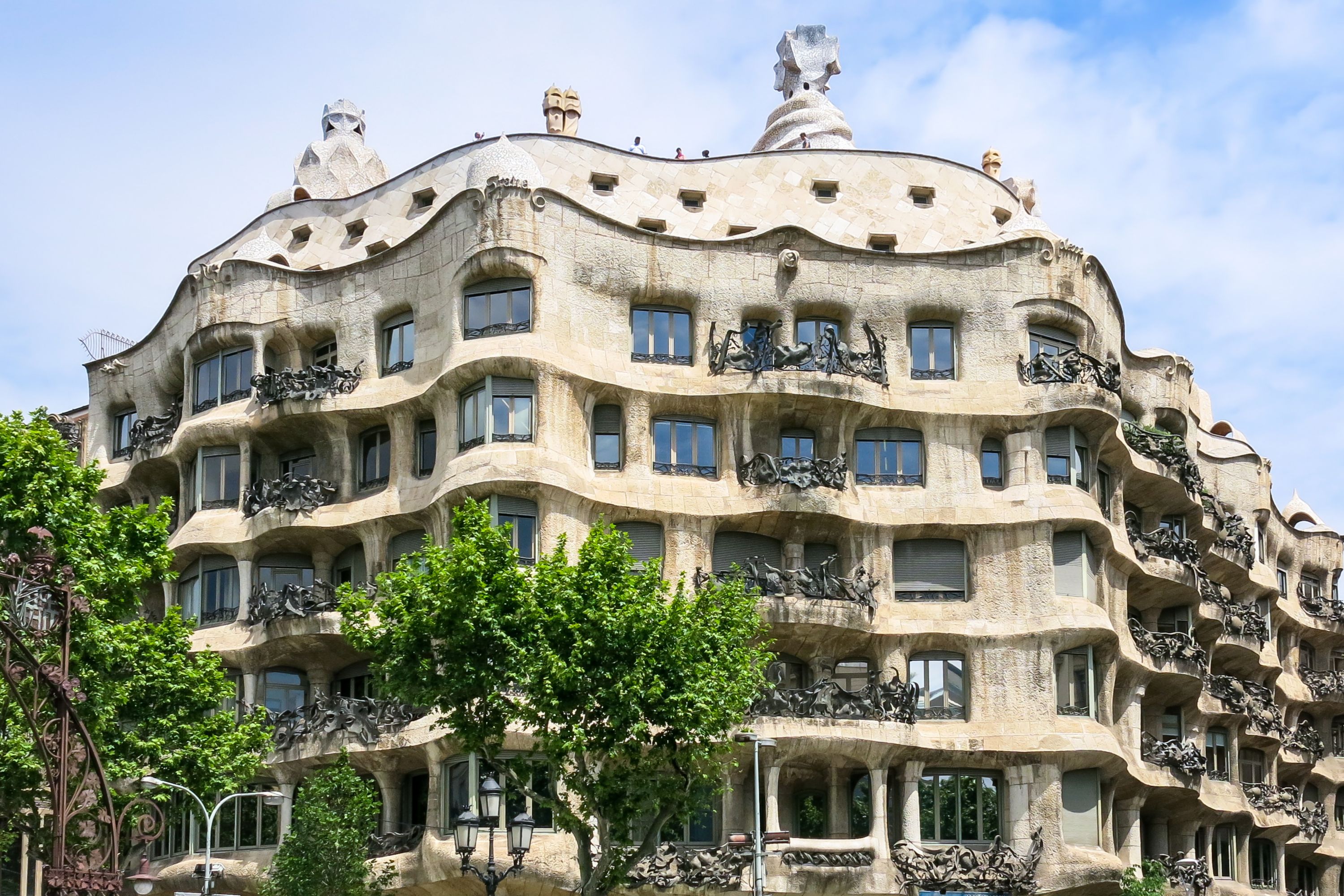 Colloquially known as La Pedrera, aka “the Quarry”, after its grey stone facade, this magnificent five-story sculpture was inspired by undulating waves and the Modernisme ideal of pairing intricate design with functionality. Delicate iron railings decorate the exterior, while the rooftop offers panoramic views of the city and twisting mosaic sculptures that make the whole building feel in motion. An open-air flower garden and 1900s apartment are just a few of the things to explore in this World Heritage exhibit.