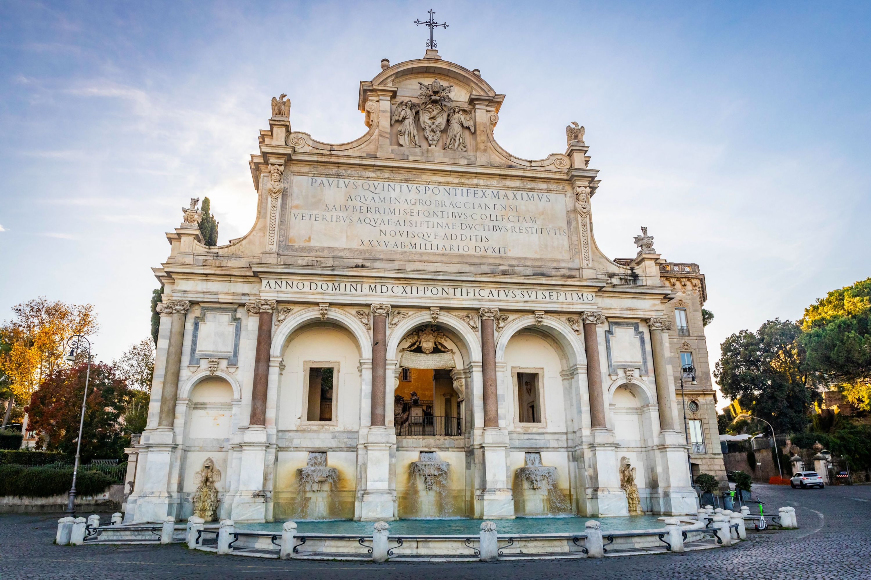 This magnificent baroque fountain was completed in 1610 by architect Giovanni Fontana. It was built to commemorate the Aqua Paola aqueduct, which supplied water to the city. The fountain features a grand façade adorned with Corinthian columns and intricate sculptures. From its elevated position on Janiculum Hill, it offers one of the best panoramic views in the city.