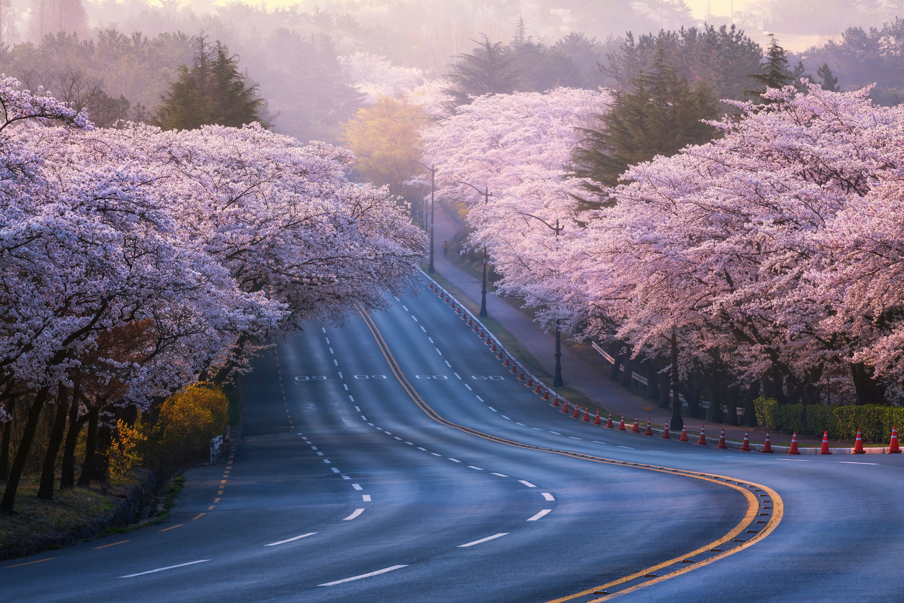 One of the most iconic spots to see Jeju Island's rare King Cherry Blossoms is on Jeonnong-ro, where the tree-lined road forms a picturesque tunnel. This is also the main site of the annual Jeju Cherry Blossom Festival, which features live music and performances, cherry blossom-themed foods, and all sorts of family-friendly activities.