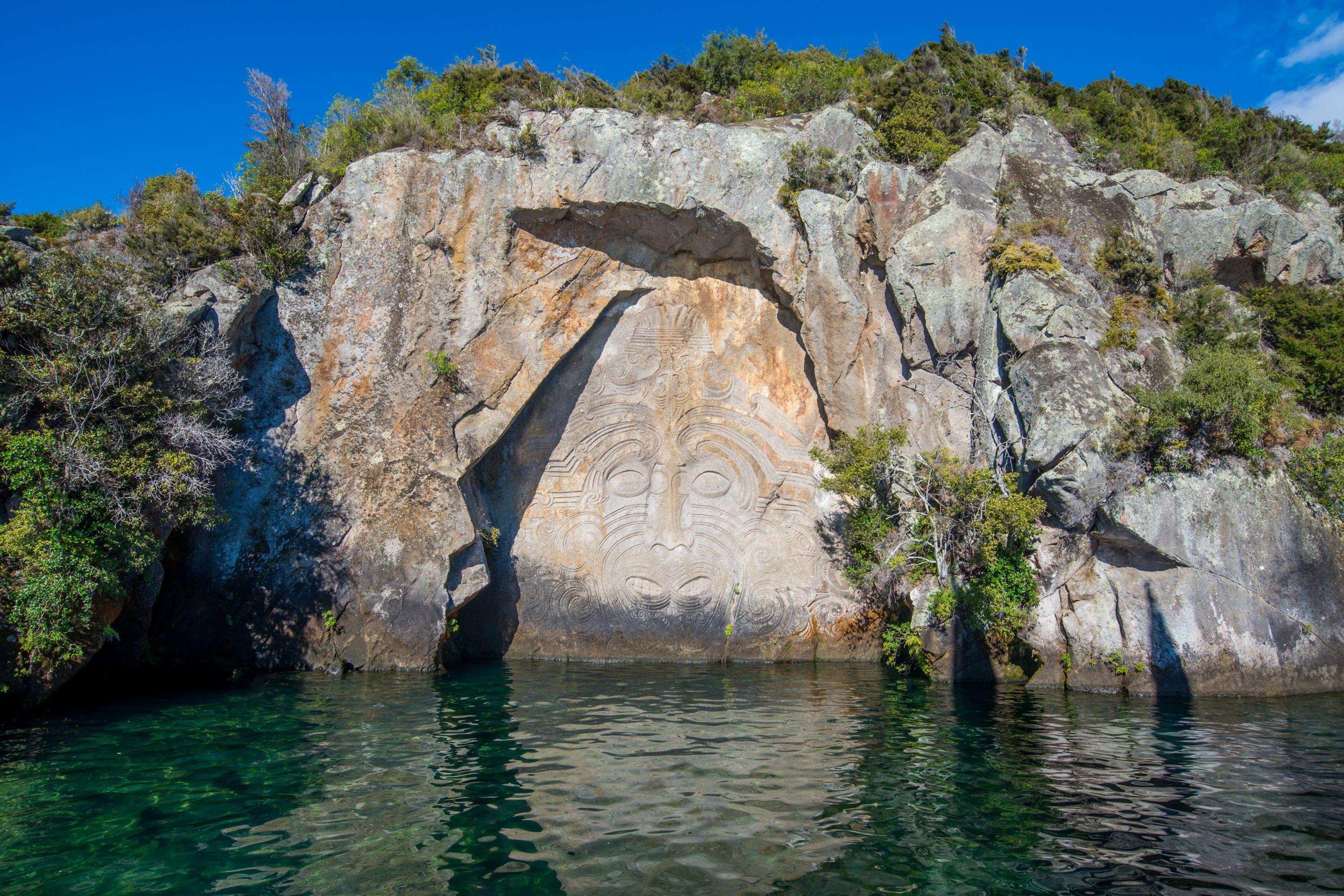 In the late 1970s, artist Matahi Whakataka-Brightwell and a small team carved his 14-metre-high likeness into the rock, creating one of the most striking examples of contemporary Māori art in the country. Surrounding the main carving are smaller figures representing ancestors and guardians. They can only be reached by water, which makes the journey as important as the sight itself.