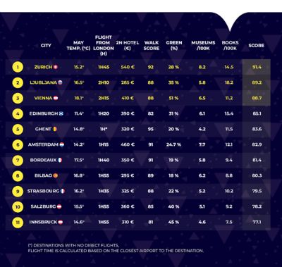 Cities like Ghent, Amsterdam or Edinburgh are among the fastest to reach, making them ideal for short and spontaneous trips.