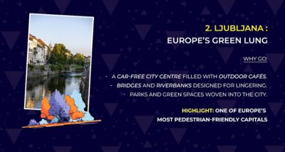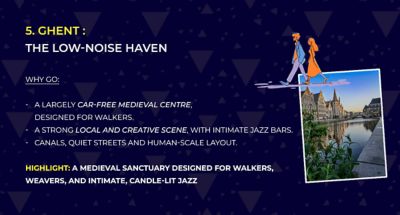 Cities like Zurich, Ljubljana and Ghent stand out for their calm atmosphere, walkability and access to nature, making them ideal for slowing down.