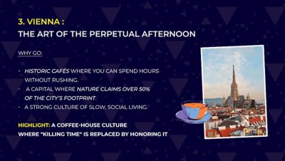 Even a 2–3 day break can be effective, especially in cities where everything is accessible on foot and the pace of life is naturally slower.