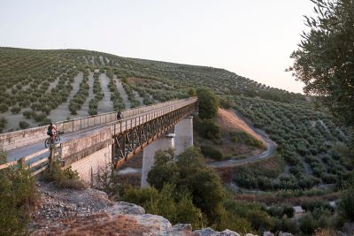 Pasear entre los olivos de Jaén es otra manera de conocer esta tierra en conexión directa con la naturaleza, disfrutando del aroma y del silencio. Una de las rutas más destacadas es la Vía Verde del Aceite, un sendero de 128 km que, partiendo de Jaén capital, sigue el trazado del antiguo tren del aceite hacia Córdoba. Es prácticamente llana, así que también puedes hacerla en bicicleta, entera o en tramos. Otro sendero, ideal para descubrir olivos gigantes, es la Ruta de los Olivos Centenarios en Martos, con unos 5400 olivos de 500 años de media. Se trata de una ruta circular de unos 18 km, perfecta para recorrerla a pie. Si te gusta montar a caballo, Andújar tiene un turismo ecuestre muy activo. Contacta con un centro especializado para organizar una ruta que combine paseo, visita a una finca y cata.