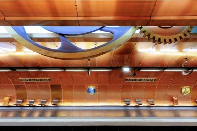 Qualifiée de plus belle station de métro par les parisiens, Arts et Métiers plonge ses usagers dans une ambiance qui rappelle l’œuvre de Jules Verne, Vingt mille lieues sous les mers. Transformée à l'occasion du bicentenaire du Conservatoire national des Arts et Métiers, la station s'inspire du travail de Jules Verne et des inventeurs de l'époque. C'est ainsi que Benoît Peeters et François Schuiten ont imaginé cet univers steampunk avec des murs recouverts de plaques de cuivre, des hublots et des structures rappelant l'intérieur d'un sous-marin.