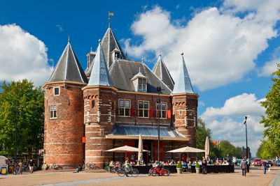 Situé sur le Nieuwmarkt, le Waag était à l’origine l’une des portes de la ville. Au fil du temps, le bâtiment n’a eu de cesse, comme le quartier, de se réinventer. Il a exercé de nombreuses fonctions comme salle d’escrime, caserne, atelier, salle d’archive ou encore de prison. Le Waag a aussi servi de musée et a un temps abrité le musée d’histoire de la ville ainsi que le musée historique juif. Ce monument d'Amsterdam a été abandonné à la fin du 20e siècle avant d'être sauvé par les habitants qui ne pouvaient se résoudre à le voir tomber en ruine. Aujourd’hui, le Waag accueille un café au rez-de-chaussée. Attablez-vous sur sa terrasse lorsque la météo le permet et jetez un coup d'œil aux collections de l'étage supérieur, dédié à l’art, aux technologies et aux sciences.