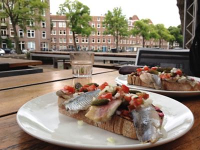 Il n’est pas exagéré de dire qu’il y a une grande histoire d’amour entre les Hollandais et le hareng. Contrairement à la croyance populaire, le hareng n'est pas consommé cru. Il est en fait salé, congelé pendant un ou deux jours puis mariné, ce qui en change le goût et la texture. Il se mange le plus souvent en sandwich, accompagné d’oignons et de cornichons. Faites comme les Amstellodamois et prenez un sandwich à emporter, pour le savourer tout en marchant le long des canaux ou dans un parc verdoyant.