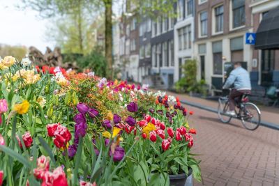 Si le roi Willem-Alexander dirige le pays, la tulipe en est la reine. Au printemps, de la mi-mars à la mi-mai, de nombreux événements dédiés éclosent un peu partout en ville et dans les environs d'Amsterdam. Si cet itinéraire est à recommander aux cyclistes avertis en raison des longues distances, il peut aussi être parcouru sur plusieurs jours.
