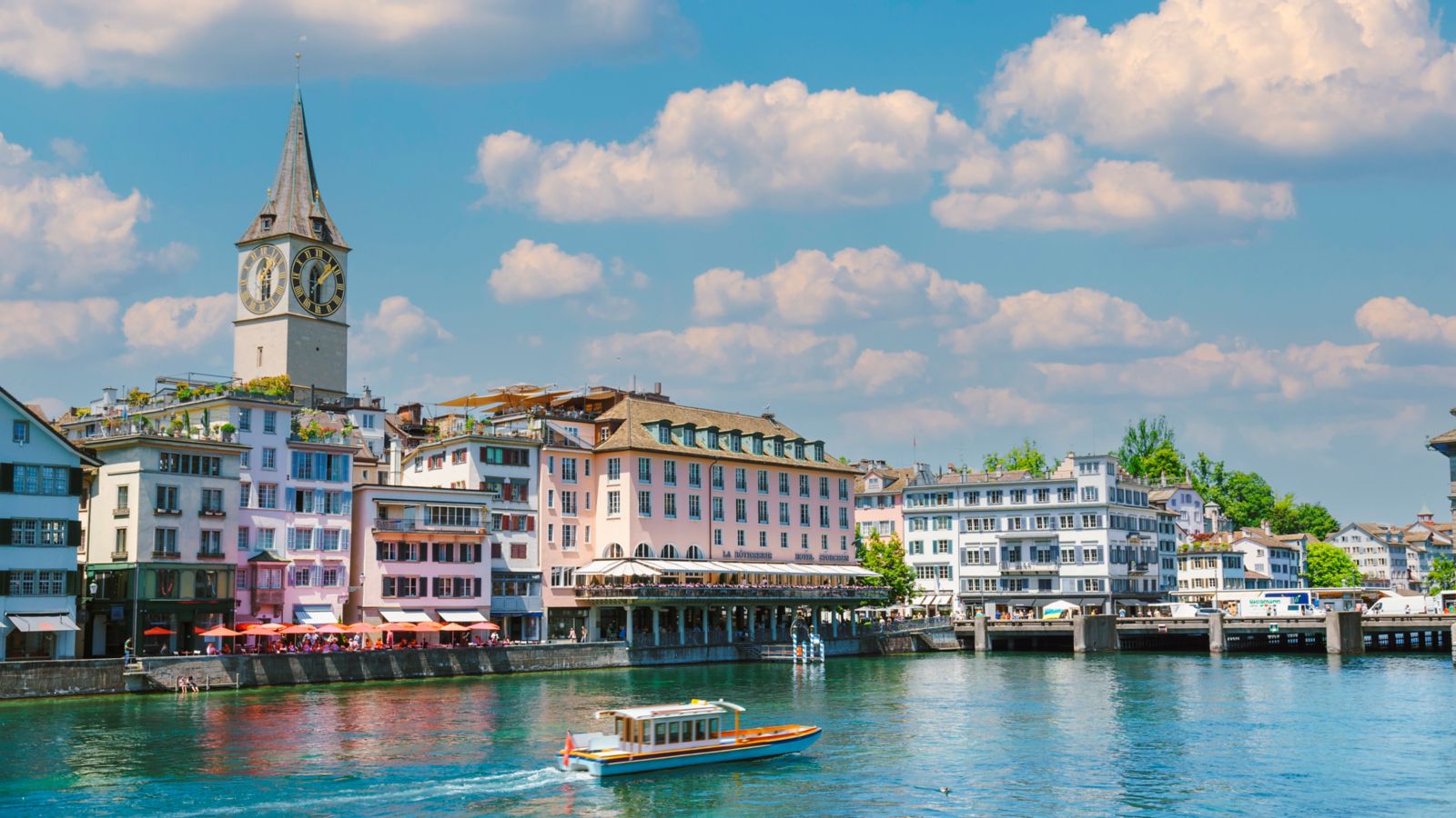 Si vous n’avez qu’une journée pour profiter de Zurich, rien de tel que de se promener le long du Limmatquai. Cette artère suit la rivière, de Central à Bellevue, traversant toute la vieille ville jusqu’au lac. Contemplez avec émerveillement les eaux émeraude de la Limmat, les ponts historiques et le clocher de l’église Saint-Pierre, reconnaissable à son gigantesque cadran d’horloge. C’est aussi l’endroit idéal pour faire du lèche-vitrine et vous installer à la terrasse d’un café. Vous pouvez également admirer les maisons de corporation zurichoises, dont certaines ont été reconverties en restaurant. Pour déguster des spécialités locales dans un cadre authentique, réservez au Haus zum Rüden et régalez-vous d’un ragoût aux champignons dans une salle au plafond en bois voûté comme un tonneau de bois !