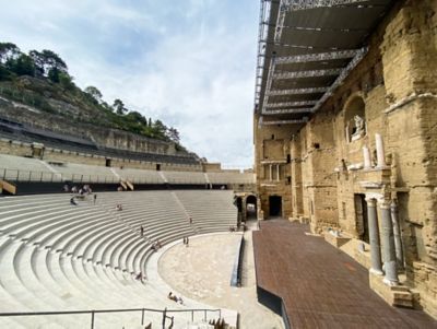 Premier arrêt de la journée rue Madeleine Roch où se trouve le majestueux théâtre antique, l'un des mieux conservés au monde. Tout comme l'arc de triomphe d'Orange, il est classé au patrimoine mondial de l'UNESCO. Le billet d'entrée vous donne accès au théâtre et au musée d'art et d'histoire situé juste en face, dans un ancien hôtel particulier. Comptez environ trois heures pour visiter les deux. C'est l'activité idéale à faire en début de journée pour découvrir l'histoire de la ville et apprécier davantage la visite de ses monuments.