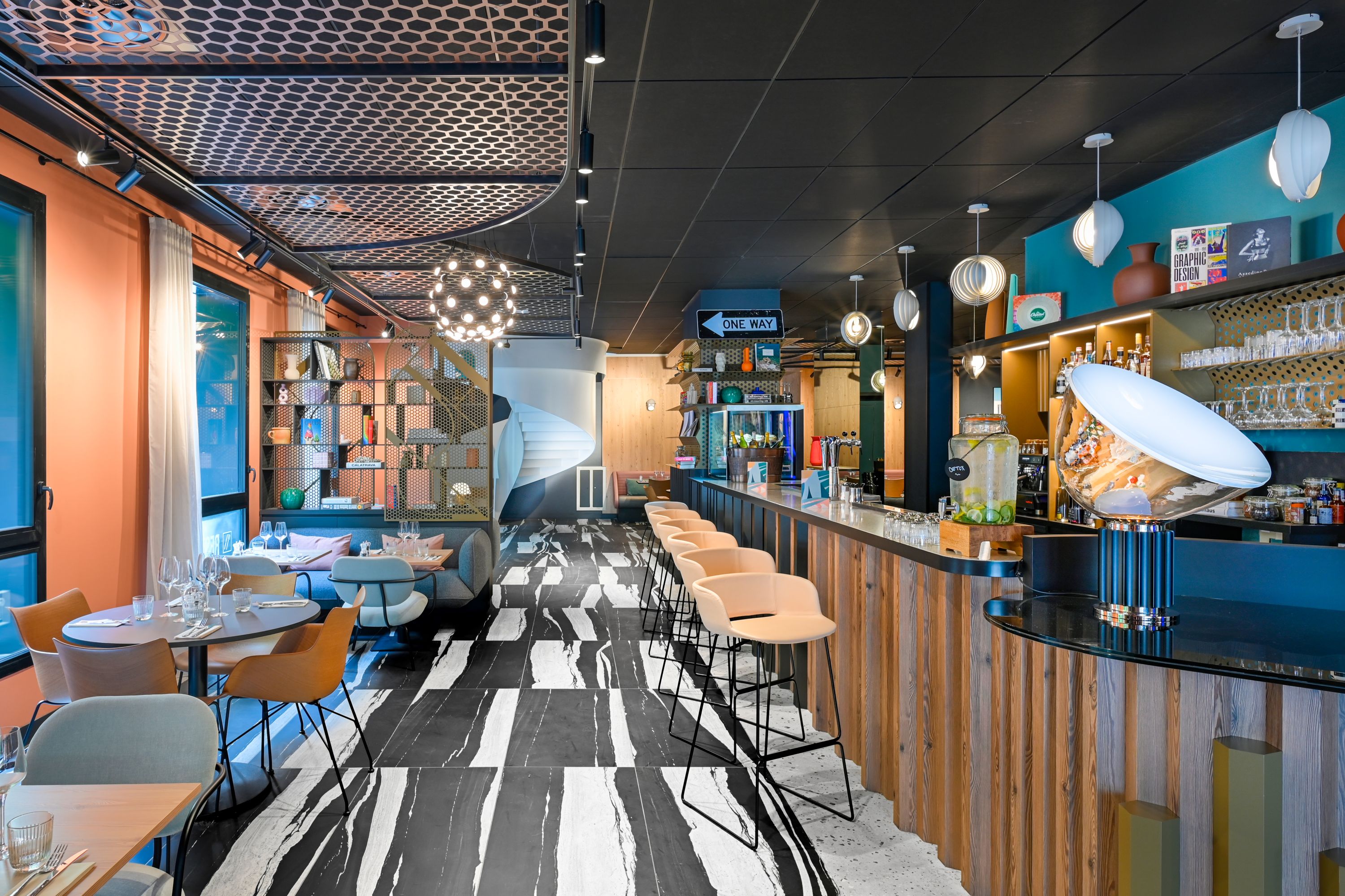 Bar koktail dan restoran dengan teras