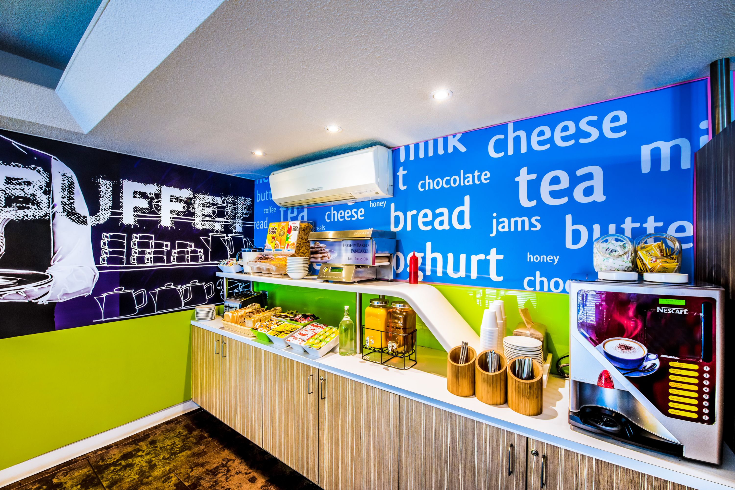 Restaurante italiano e wine bar, café e padaria, além de um pub