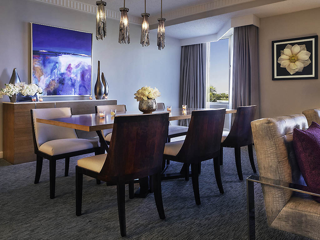 Elegantly appointed suite, 1107 sq. ft. (102.8 m²), with modern decor and amenities. Entertain in style in our spacious separate lounge area within the suite with dining table included, microwave, complimentary WiFi, Nespresso maker.