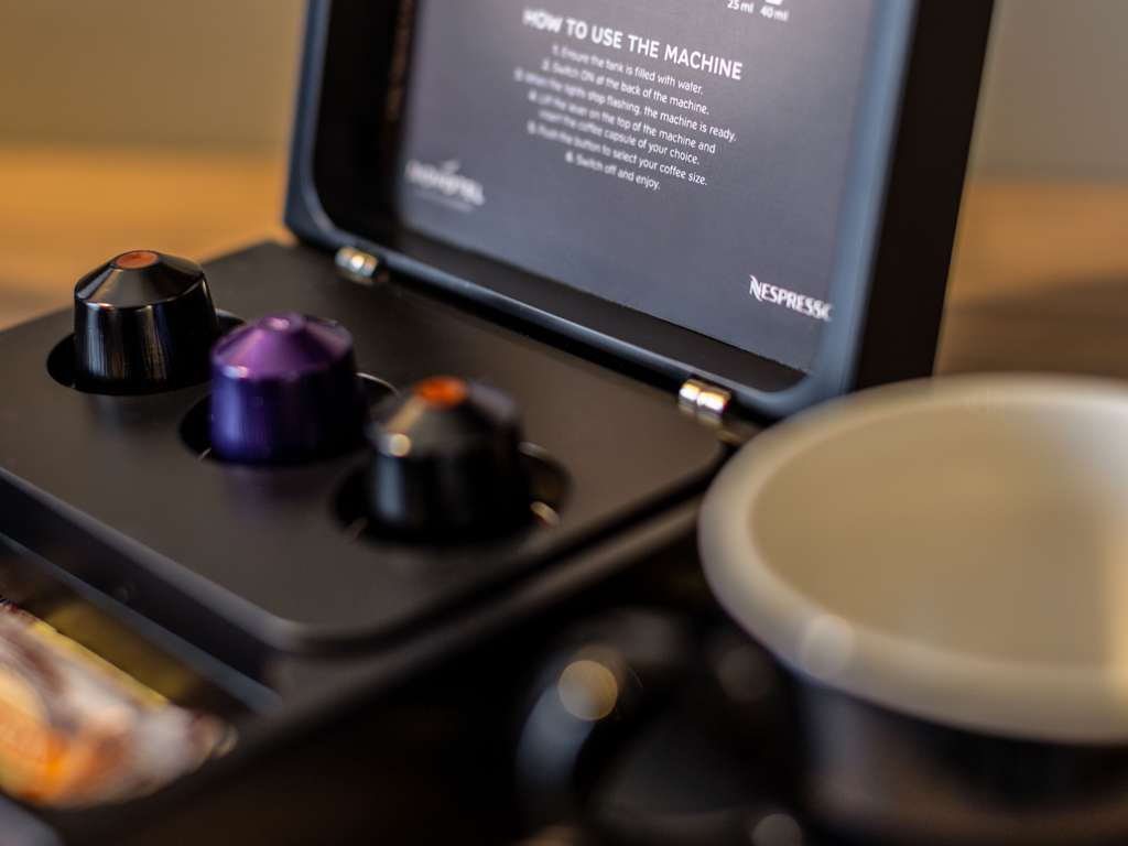 A modern spacious room with queen-size bed, en-suite bath/shower or walk-in shower, ergonomic work area, 55" LCD TV, hair dryer, minibar fridge, Nespresso coffee maker, complimentary WiFi. Max 2 adults.