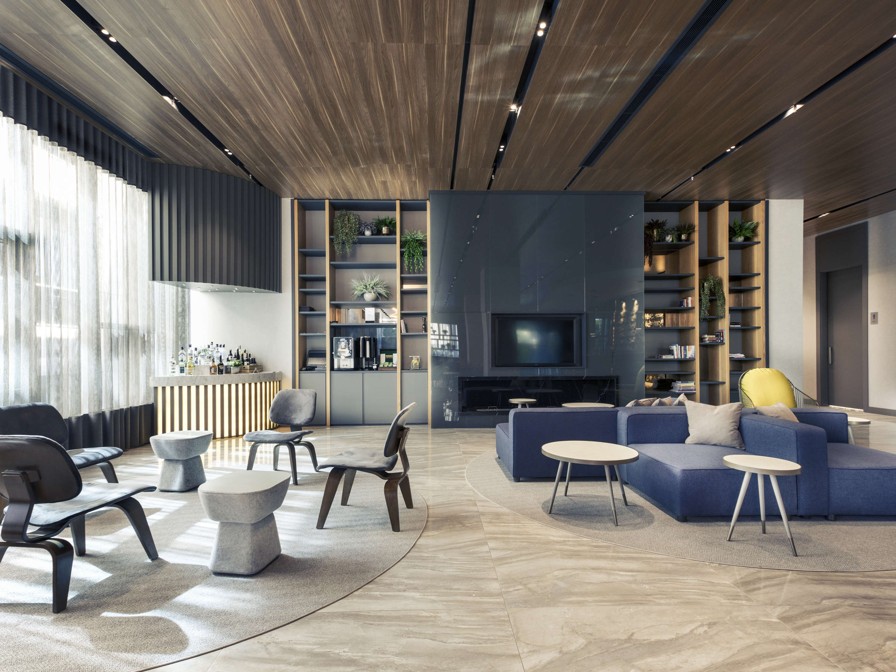 バー「ミマドバリス」は1階にございます。お仕事の終わりに、広いテラスでお飲み物や軽食をご満喫ください。