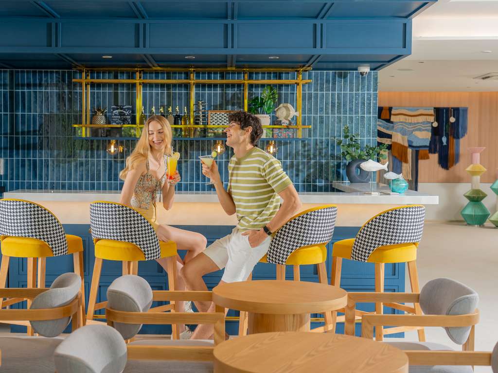 استمتع بأجواء ميامي على سطح فندقنا النابض بالحياة في فوكيت. استمتع باحتساء كوكتيلات مثلجة مميزة وتناول أطعمة خفيفة مختارة بعناية في أجواء أنيقة وبسيطة. مكان مثالي للاستمتاع بمناظر غروب الشمس الذهبية وطاقة الليل.
