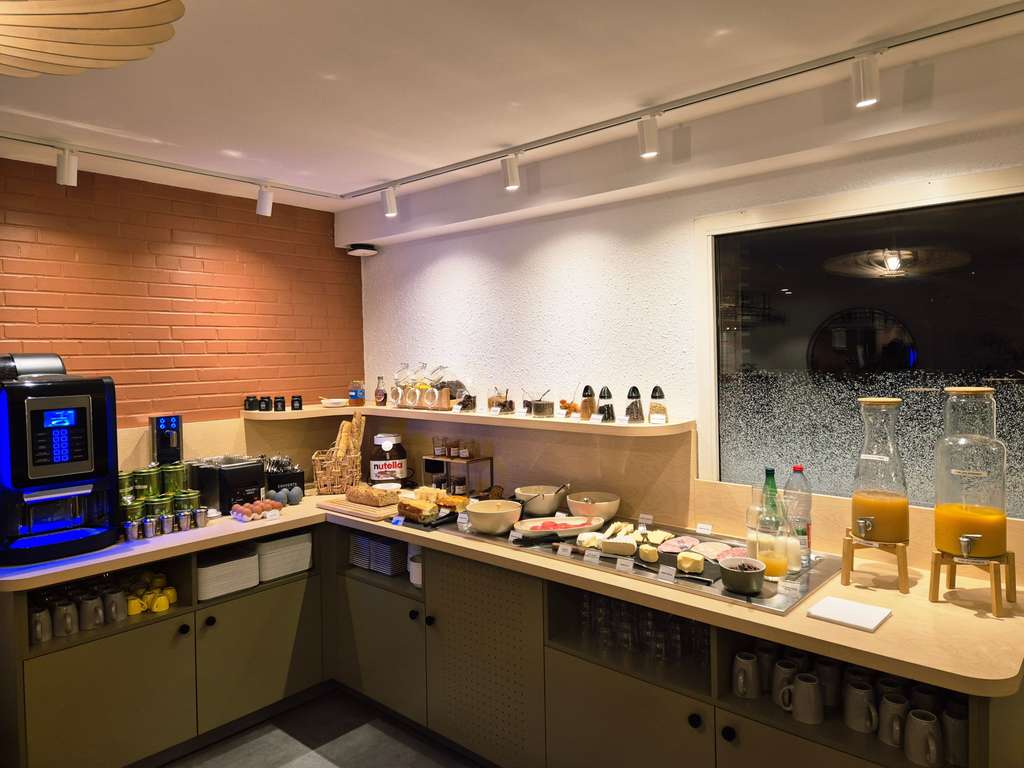 Bem-vindo ao moderno e simpático bar do ibis Styles Lille Villeneuve-d'Ascq. Desfrute de uma variedade de bebidas refrescantes e refeições ligeiras disponíveis durante todo o dia. Perfeito para relaxar ou trabalhar tranquilamente.