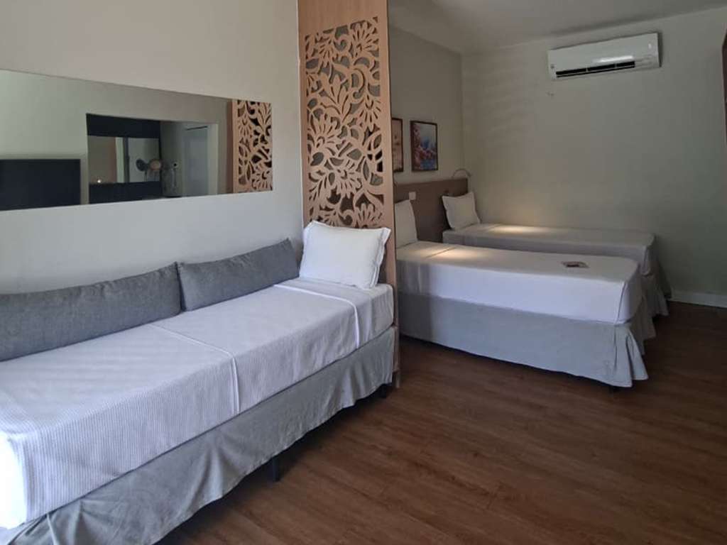 Room with 3 single beds.